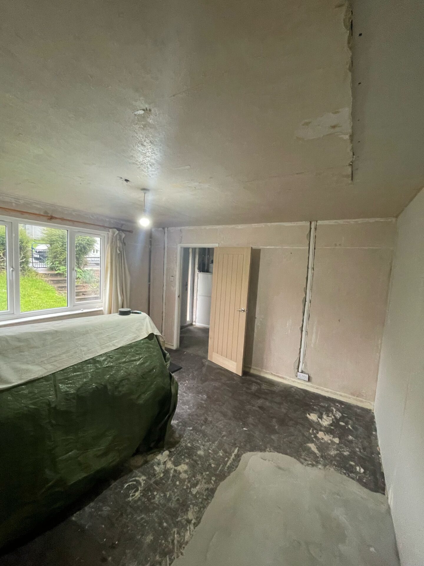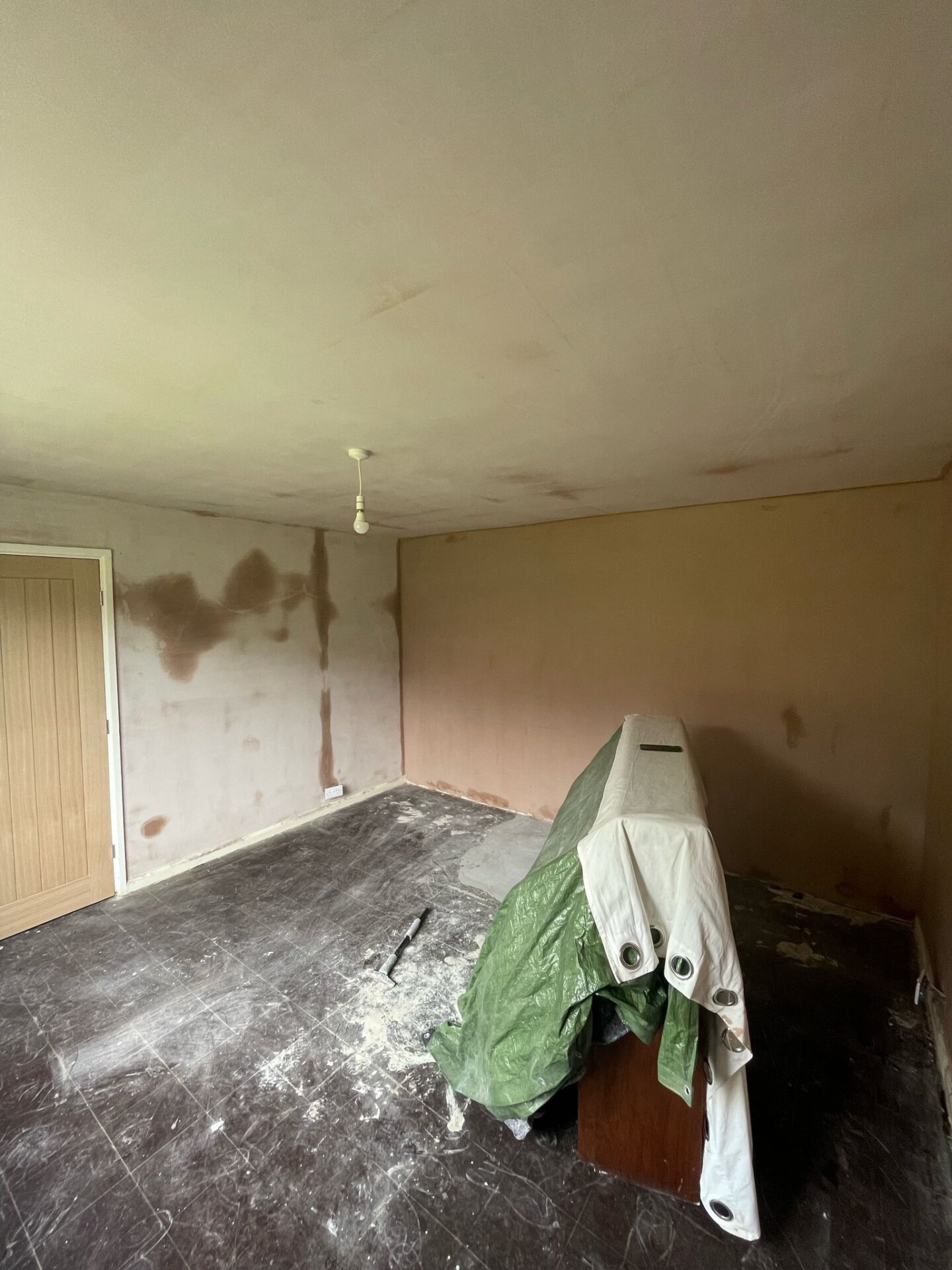 Job Description: Overboard lounge ceiling installed and plastered, walls plastered as well.