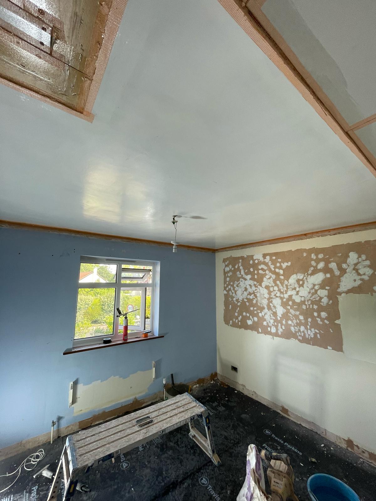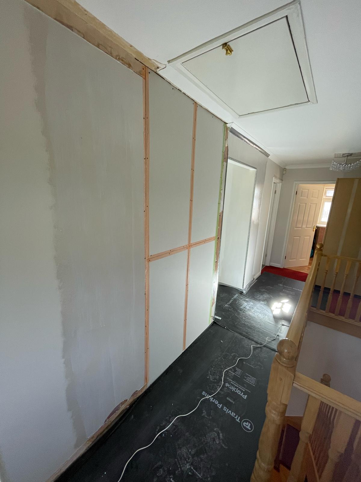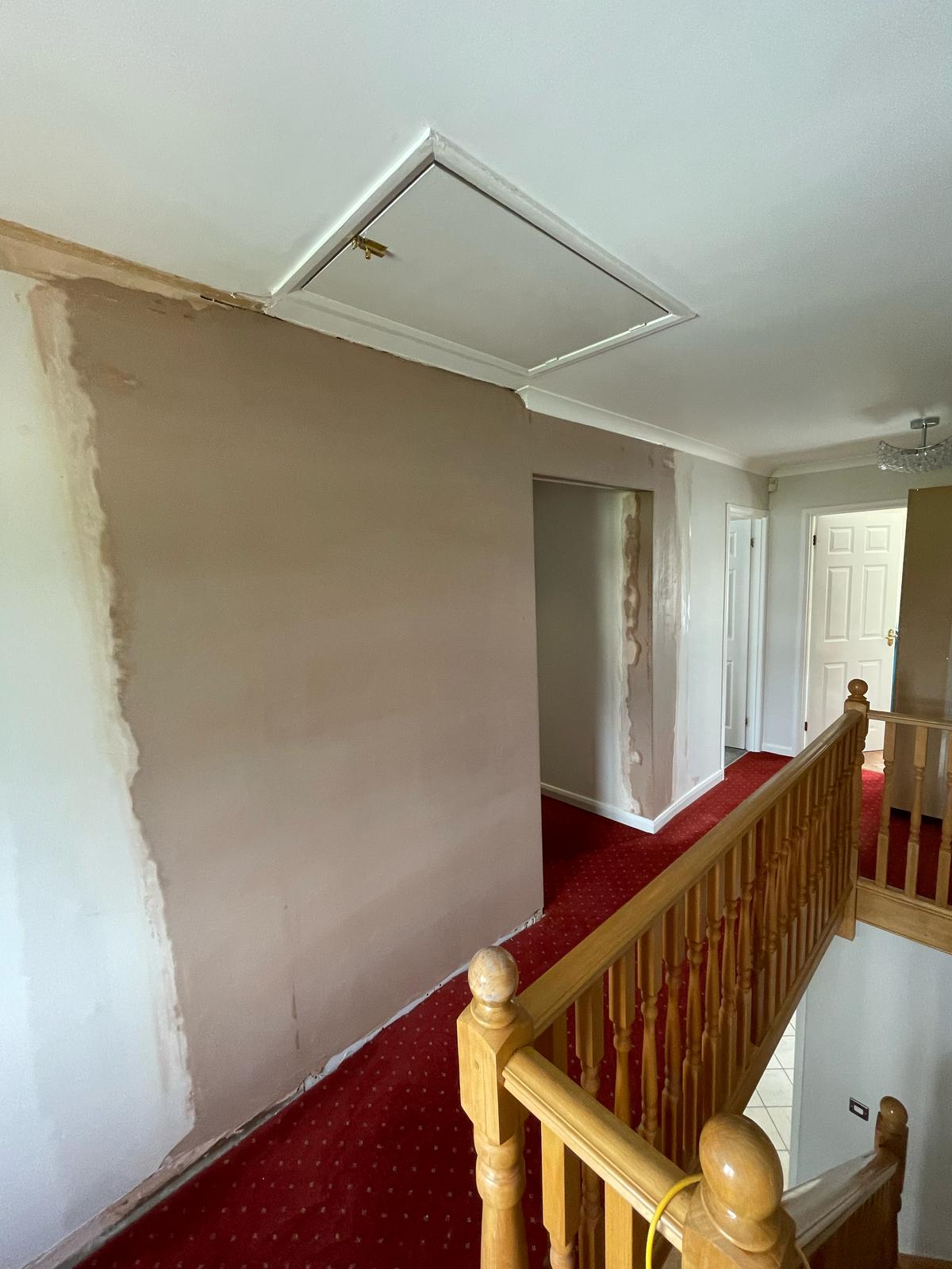 Job Description: Re-plastered small box room and patch-plastered the landing walls.